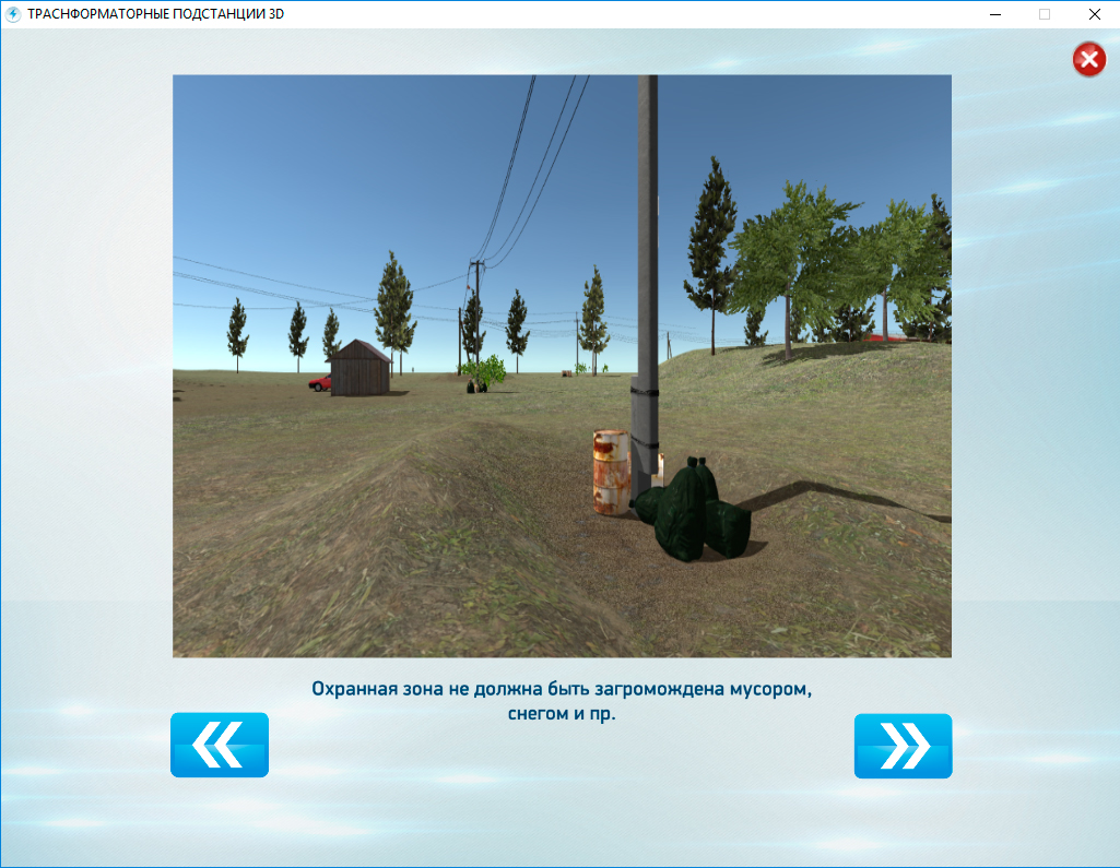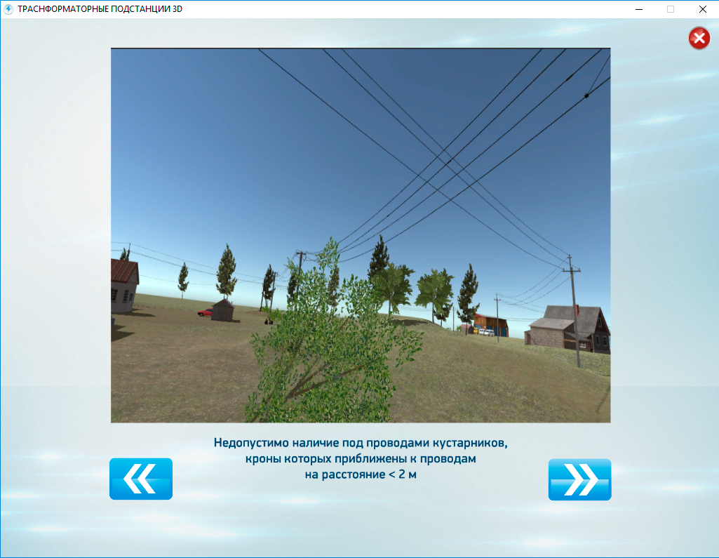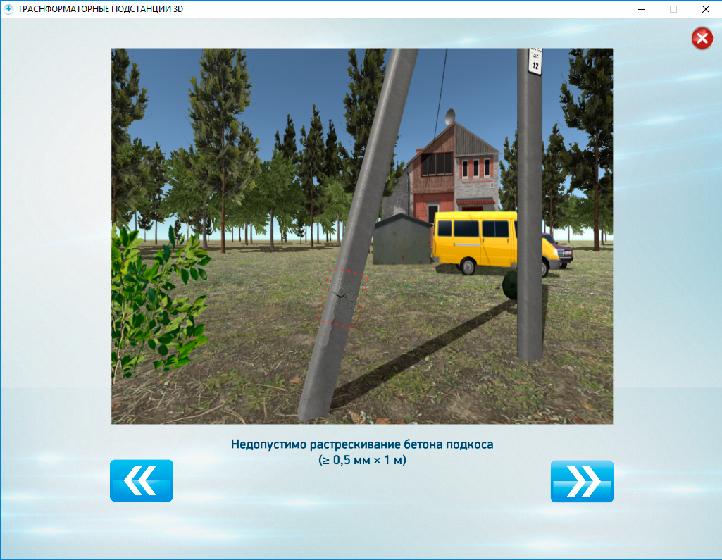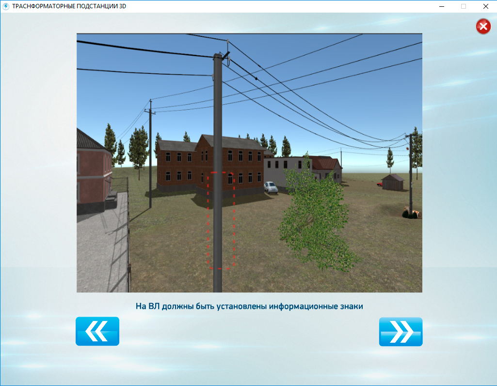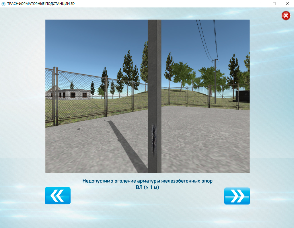 В режиме тренировки пользователь изучает порядок проведения осмотра ВЛ, типичные дефекты и повреждения элементов ВЛ, а также требования, установленные нормативной документацией.