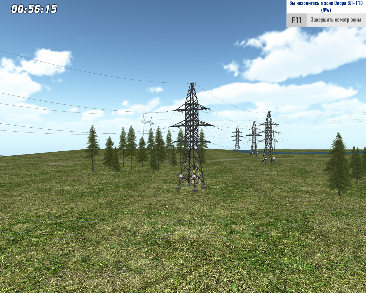 В тренажере смоделирован отрезок ВЛ-110 кВ с различными типами опор, включающий характерные участки линии, в том числе: