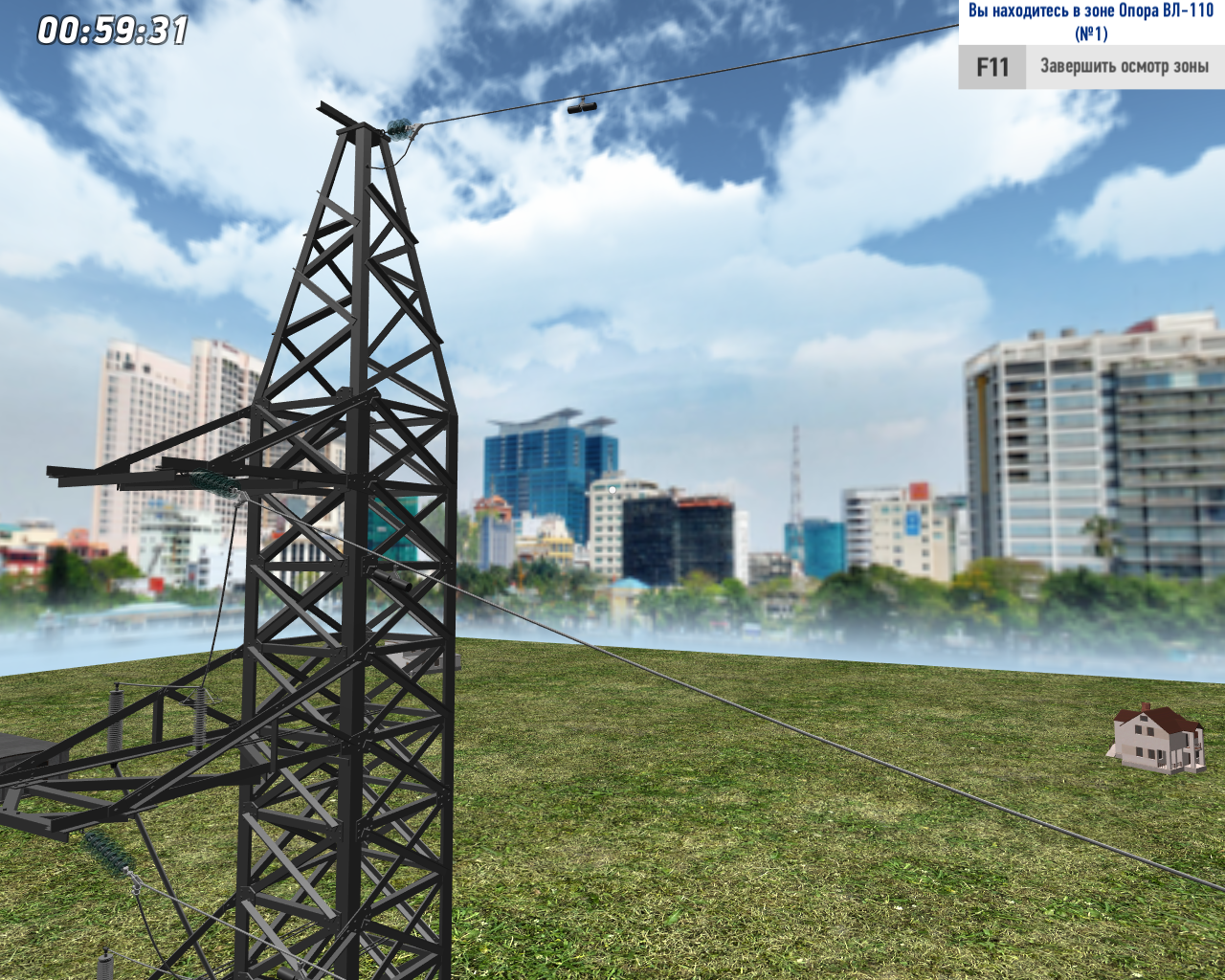 Пользователь свободно перемещается по объекту и в виртуальном режиме выполняет все операции оценки состояния ВЛ и ее элементов.
