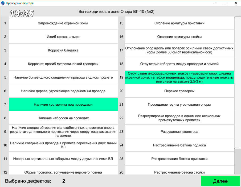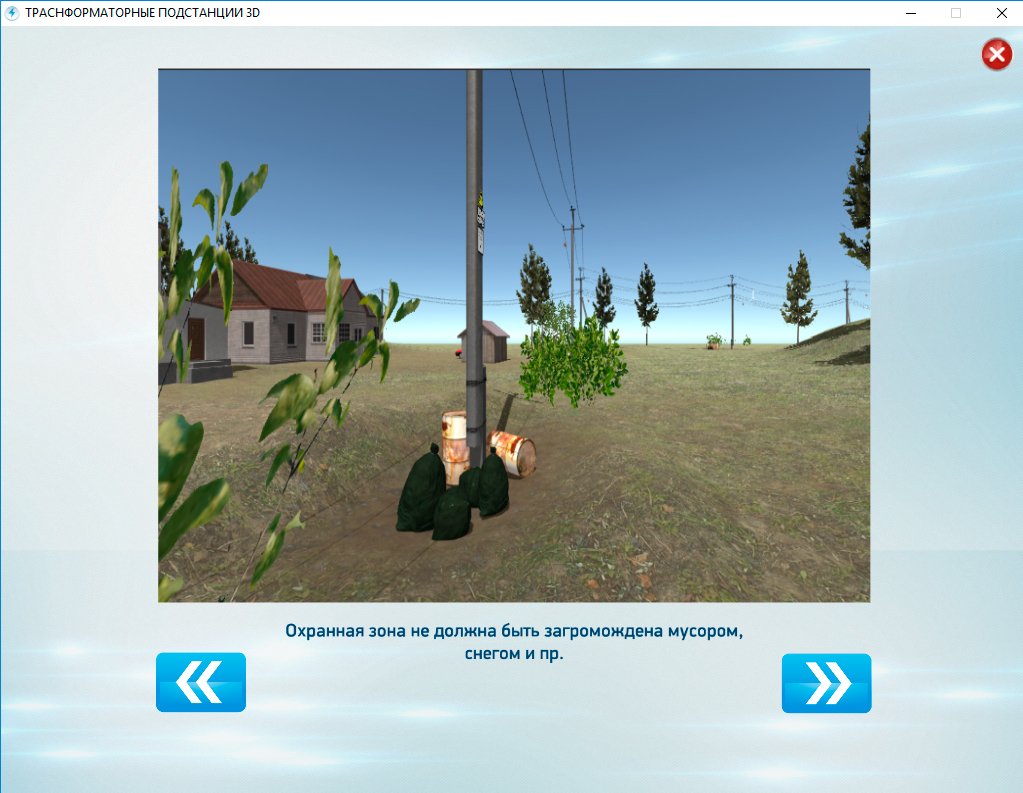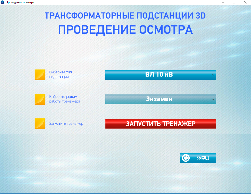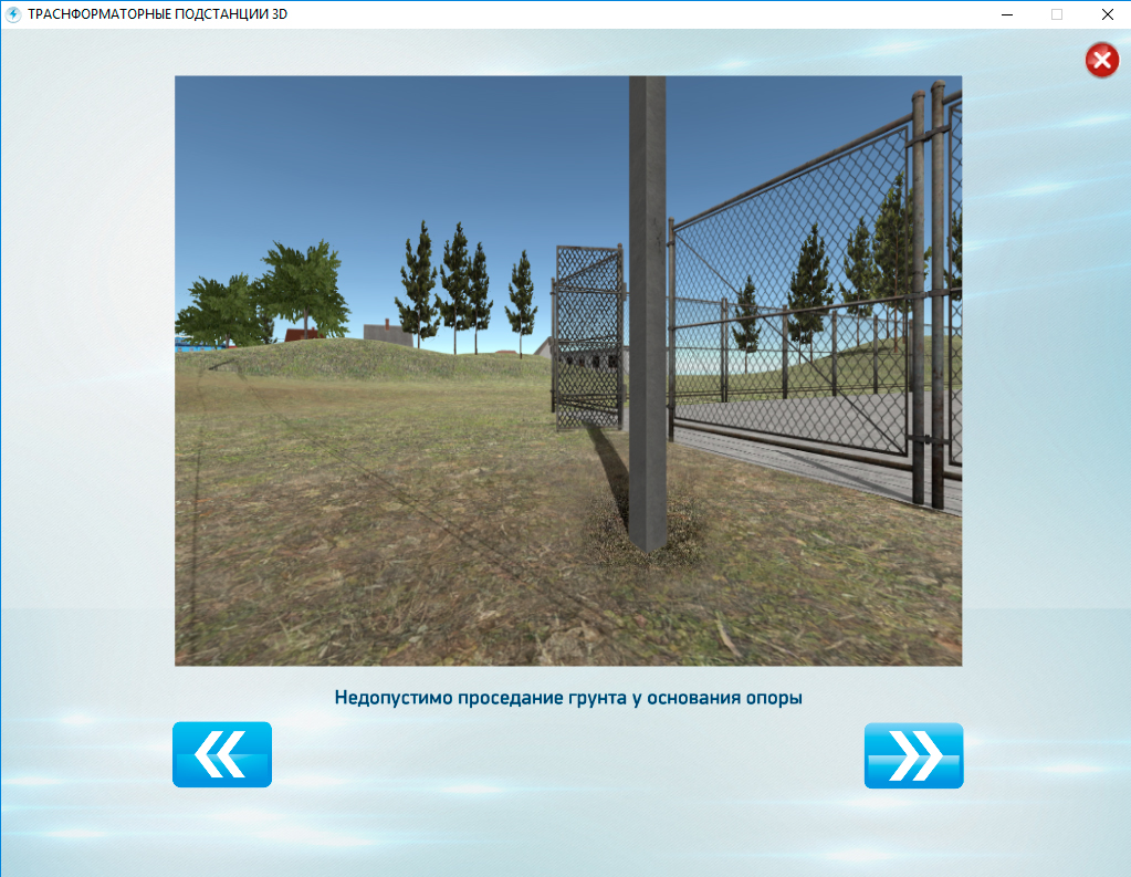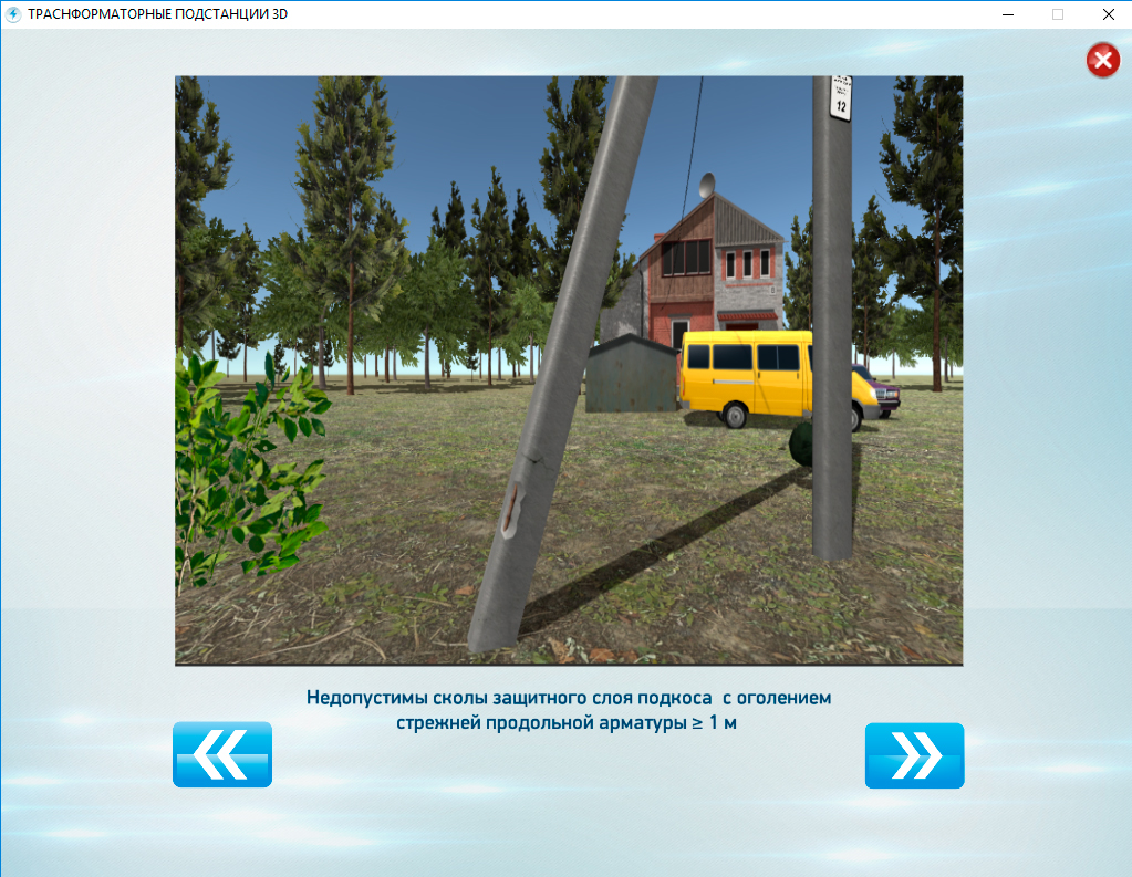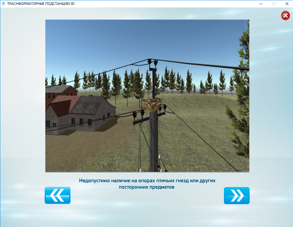 В режиме тренировки пользователь изучает порядок проведения осмотра ВЛ, типичные дефекты и повреждения элементов ВЛ, а также требования, установленные нормативной документацией.