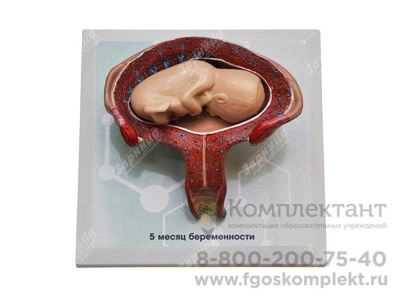 Комплект демонстрационных моделей отражает динамику топографо-анатомических особенностей этапов пренатального развития человека от одного до семи месяцев беременности. Модели выполнены из полимерных материалов, реалистично воспроизводящих свойства тканей матки, зародыша, плода, а также плаценты и пуповины. Передняя стенка матки на препаратах отсутствует, в целях визуализации ее полости и возможности извлечения плода. Отдельная модель воспроизводит вариант развития близнецов. Изделия расположены на удобных подставках, с которых при необходимости легко снимаются.