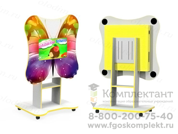 Это уникальный интерактивный игровой комплекс-трансформер. Интерактивный развивающий стол Бабочка, имеет яркий, красивый и запоминающийся дизайн, а так же лаконичную и практичную форму, которые никого не оставят равнодушным. Лицевая панель имеет травмобезопасные закругленные края. Интерфейсы, кнопки и разъемы, скрыты в недоступном для детей месте и закрываются на замок. Благодаря особой конструкции складных ножек, комплекс мгновенно превращается в интерактивный стол. Ножки стола — телескопические, позволяют легко подобрать оптимальную высоту стола под ростовую группу. В зависимости от формы и целей обучения, его легко можно использовать, и как интерактивный игровой терминал и как интерактивный стол, что имеет большое практическое значение. Данная модель производится в различных комплектациях, так что купить интерактивный стол от компании "Olodim" - Российского производителя интерактивных столов, может позволить себе, даже организация с очень скромным бюджетом.